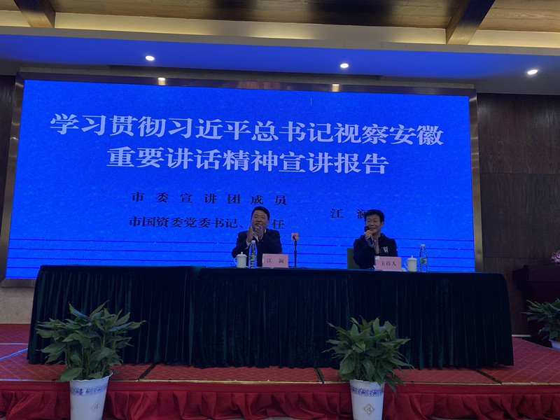 活動(dòng)第二部分,公司邀請了市委宣講團(tuán)成員、市國資委黨委書記、主任江瀾同志給公司全體員工作了《學(xué)習(xí)貫徹習(xí)近平總書記視察安徽重要講話精神》的宣講。江主任對習(xí)總書記視察安徽重要講話精神作了深刻的闡述,并結(jié)合實(shí)際對我公司為蕪湖市經(jīng)濟(jì)、產(chǎn)業(yè)發(fā)展所作貢獻(xiàn)、取得成績給予高度認(rèn)可,進(jìn)一步激發(fā)了公司全體員工干事創(chuàng)業(yè)的激情。